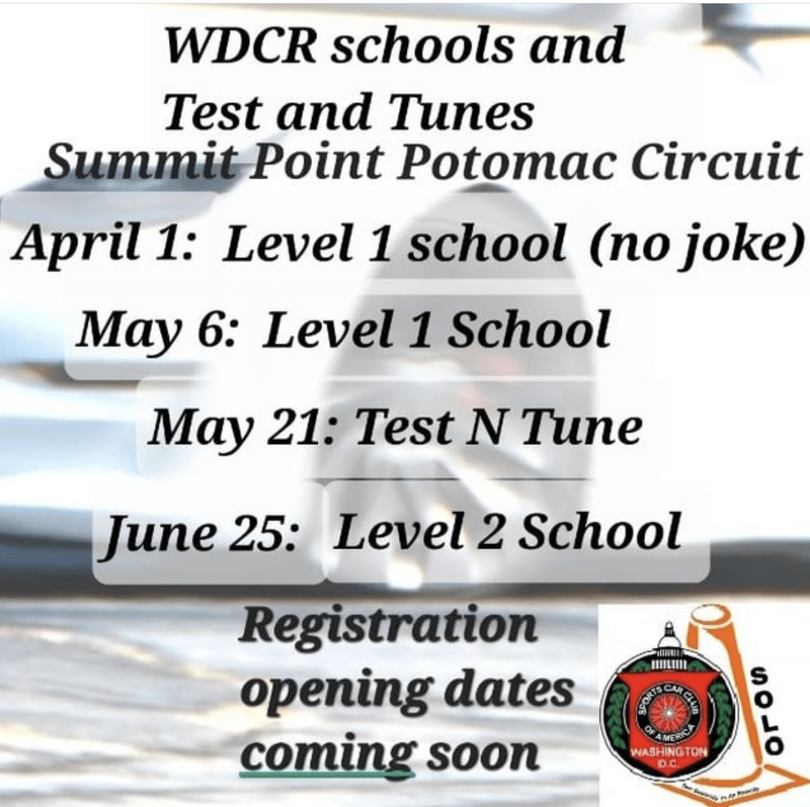 Summit Point Motorsports Park 201 Motorsports Circle, Summit Point, WV, United StatesRacing School for Competition Licenses is on March 17, 18 & 19, 2023, at Summit Point Motorsports Park. Please note: This is a Friday evening / Saturday / Sunday event. Registration will open this evening at 6 pm!!! Entry Fees: only $300! Join the Washington DC Region SCCA for our Racing School for Competition License event for 2023. Registration Fee […]