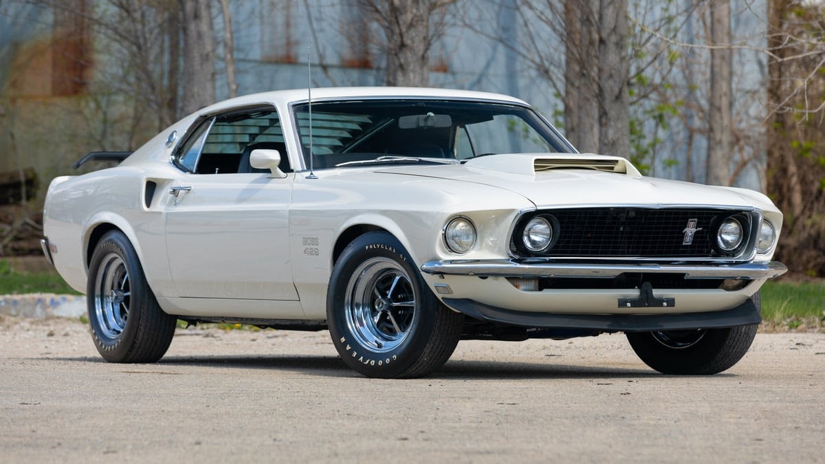Main attraction offerings include a fuel-injected 1963 Chevrolet Corvette Z06 (Lot S104) and a 4-speed 1969 Ford Mustang Boss 429 Fastback (Lot F105).