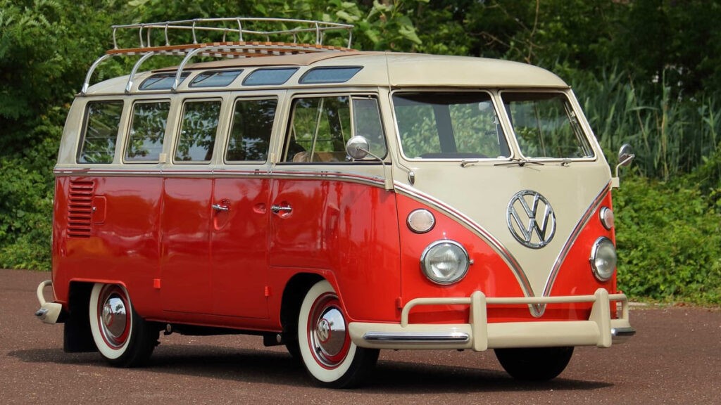 and a restored German-built, 21-window 1965 Volkswagen Type II Samba (Lot F200) with a 1600cc/40 HP 4-cylinder engine and 4-speed manual transmission. The muscle cars in the collection include a comprehensively frame-off nut-and-bolt restored 1970 Pontiac GTO Convertible (Lot F217) with a matching-numbers 455/360 HP V-8 engine and a 1968 Shelby GT500KR Fastback (Lot S81) with a 428/355 HP Cobra Jet V-8 engine and 3-speed Cruise-O-Matic automatic transmission.